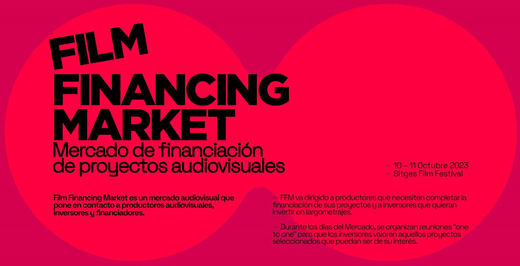 El 1 de mayo se abre la convocatoria de proyectos para la primera edición del Film Financing Market, un mercado de financiación de proyectos audiovisuales que pone en contacto a productores audiovisuales, inversores y financiadores en reuniones one-to-one personalizadas con el objetivo de proporcionar soluciones de financiación para el sector cinematográfico.