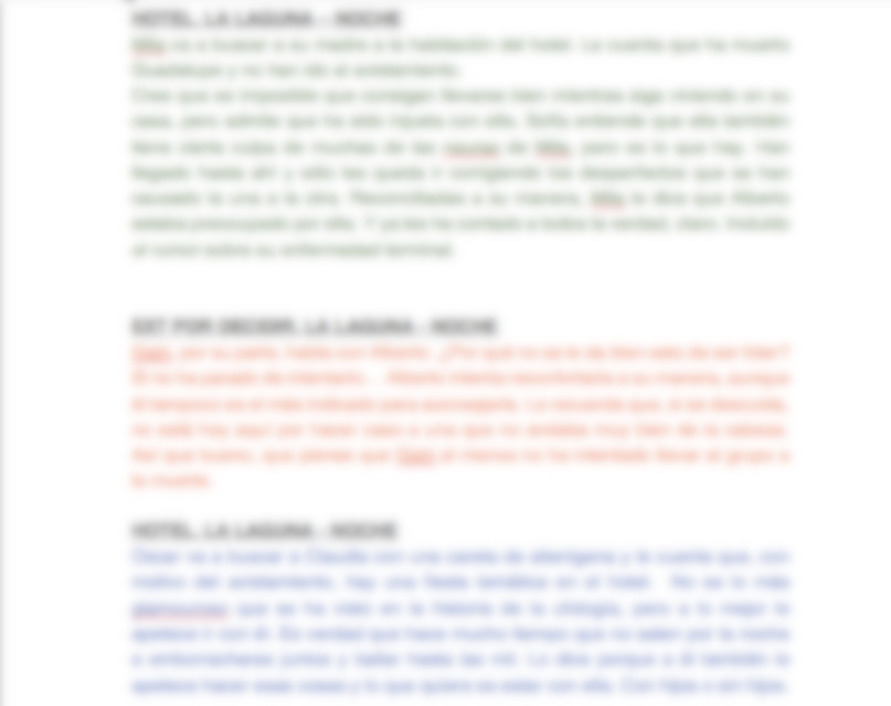 El siguiente paso fue reunirme con mi tutora, Lola Mayo, para comentar la escaleta, una reunión estupenda de la que salí con preguntas, carencias detectadas y reflexiones que me han ayudado a lanzarme con una segunda versión más concreta y detallada que creo que ahonda mejor en los lugares por donde van pasando emocionalmente los personajes.